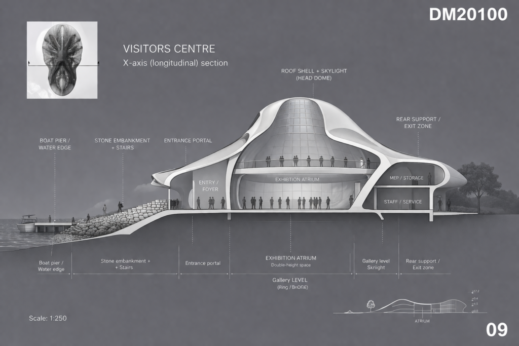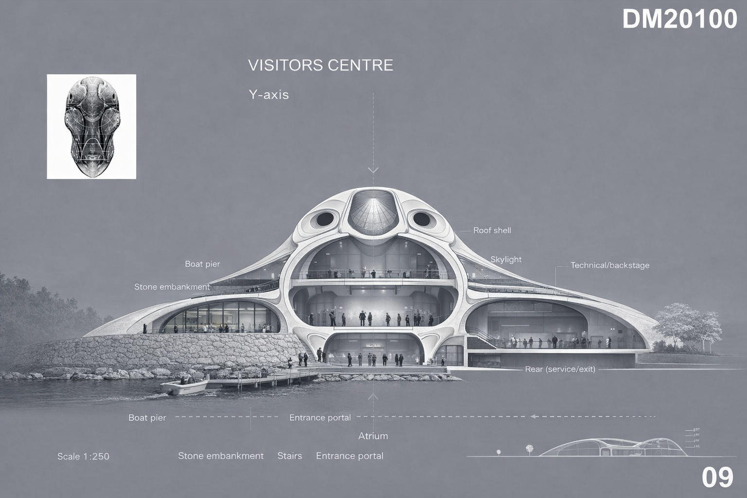 Мој предлог развија хибридну антропоморфну форму, засновану на спекулативној тези инспирисаној облицима глава винчанских фигурина — чије издужене и футуристичке форме и данас остају археолошка енигма. Док струка ове облике тумачи као зооморфно инспирисане ритуалне маске, мој пројекат их чита као носиоце другачије, хибридне симболике са конкретном асоцијацијом на ванземаљске облике живота и форми са којим су се Винчанци сусрели и потенцијално те облике пренели на своје рукотворине.
